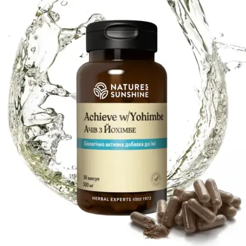 Achieve with Yohimbe (Ачив с Йохимбе) предназначается для стимуляции и усиления половой активности у мужчин, а также для усиления мужской репродуктивной функции. Этот продукт являет собой выверенную комбинацию различных лекарственных препаратов, которые повышают либидо, энергетический баланс, увеличивают половую выносливость, и оказывают общеукрепляющее воздействие на мужское здоровье.